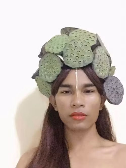 Điều thu hút sự chú ý của mọi người chính là cách chàng trai này tạo ra những bộ trang phục độc đáo từ thiên nhiên.