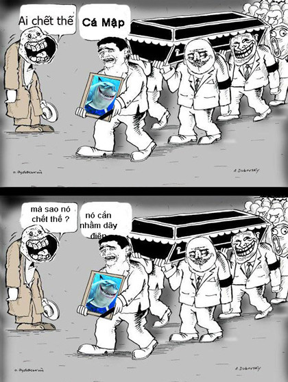 Nhiều cư dân mạng đã chế ảnh đoàn cá mập khiêng 1 chiếc quan tài và vật được tưởng nhớ tới là đoạn cáp viễn thông bị cắn.