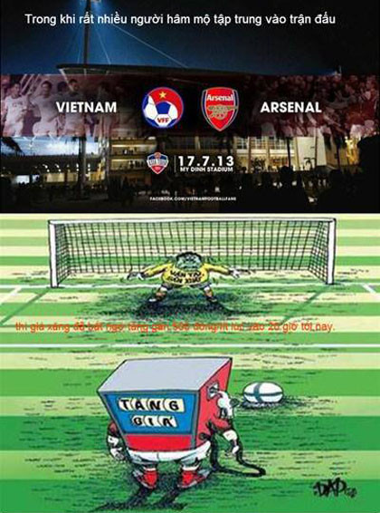 Ảnh chế giá xăng tăng trùng với trận VN-Arsenal
