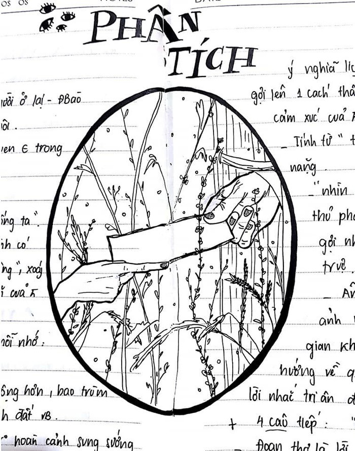 Vẫn là nhiệm vụ trả lời các câu hỏi cho trước trong sách giao khoa, thế nhưng giờ đây quyển vở soạn văn trở nên sống động hơn hẳn nhờ những hình vẽ bay bổng, sáng tạo và đẹp mắt. Bên cạnh đó, đây không chỉ là những hình vẽ cho vui mà còn có liên quan mật thiết đến nội dung bài học, thể hiện sự nghiên cứu tìm tòi tác phẩm một cách rất nghiêm túc của người vẽ nên chúng. Có lẽ nếu sở hữu một quyển vở soạn văn như thế này, rất nhiều người sẽ muốn ngày nào cũng có môn văn để được mở nó ra khi học bài.