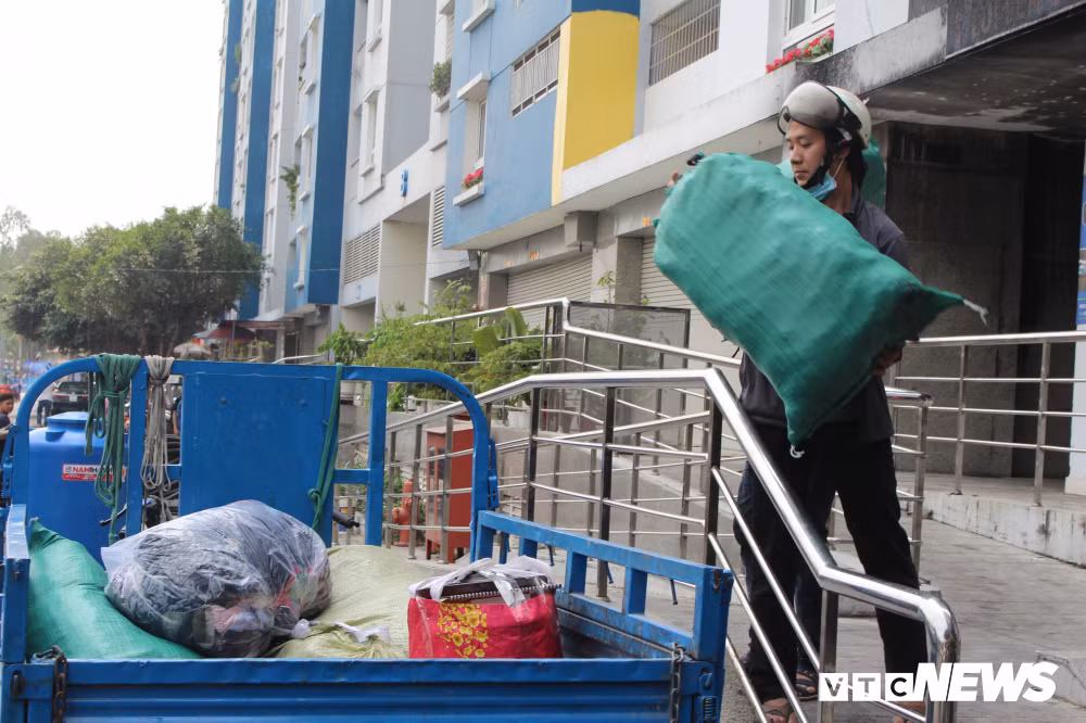 Ảnh: Cư dân Carina Plaza còng lưng cõng tài sản đến chỗ ở tạm