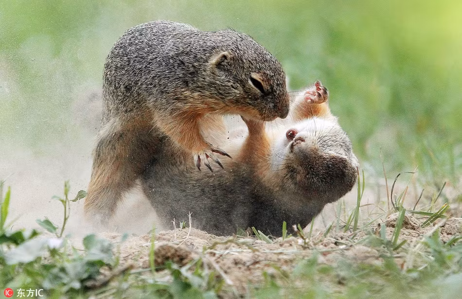 Hai con sóc đất lao vào nhau, dùng mọi kỹ năng chiến đấu mà chúng có để tấn công chính đồng loại của mình.