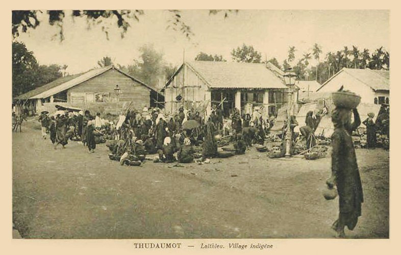 Khu chợ của thị trấn Thủ Dầu Một, tỉnh lỵ của tỉnh Thủ Dầu Một thời thuộc địa, ngày nay là thành phố Thủ Dầu Một trực thuộc tỉnh Bình Dương. Ảnh tư liệu.