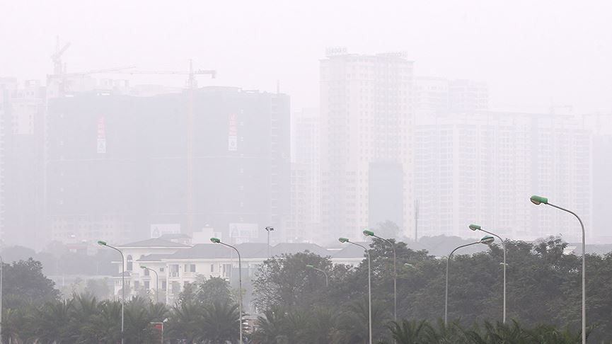 Khu vực đô thị dang phát triển ở quận Cầu Giấy chìm trong sương mù cứ như bầu trời ở Sa Pa được đưa về đây.