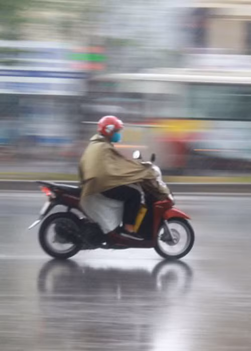 Một lúc sau, cơn mưa bắt đầu lớn dần khiến tầm nhìn của người tham gia giao thông bị hạn chế.
