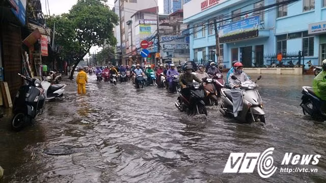 Các phương tiện đi lại gặp nhiều khó khăn vì đường phố ngập nước.