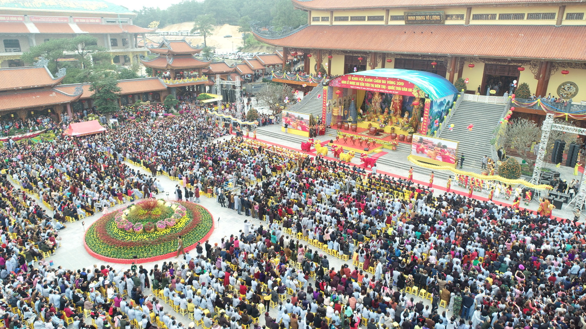 Sân chùa Ba Vàng "biển người" đứng chật kín.