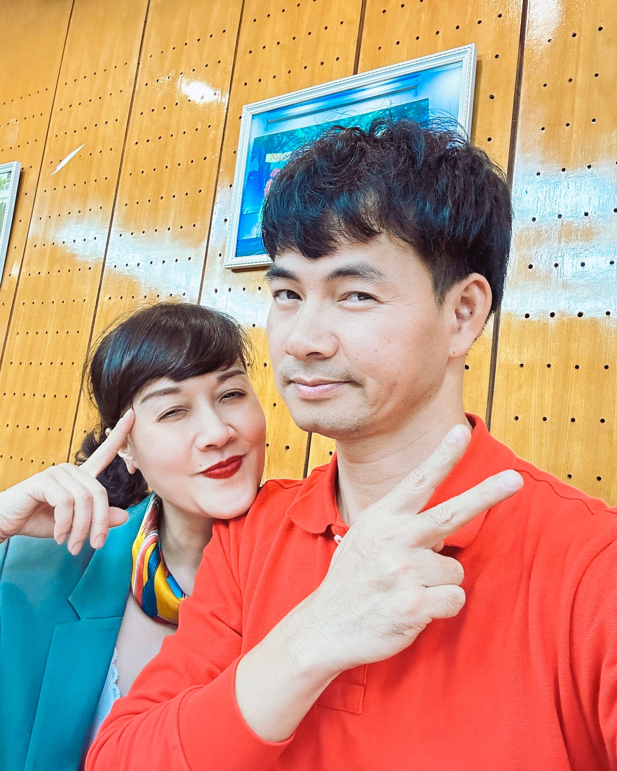 Hình ảnh nghệ sĩ Vân Dung và Tự Long ở hậu trường Táo quân 2023.