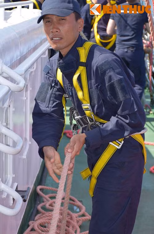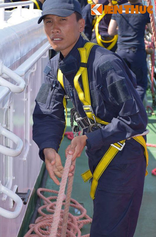 Các thủy thủ Việt Nam còn phải thao tác trên cột buồm với độ cao chót vót lên tới 40m.