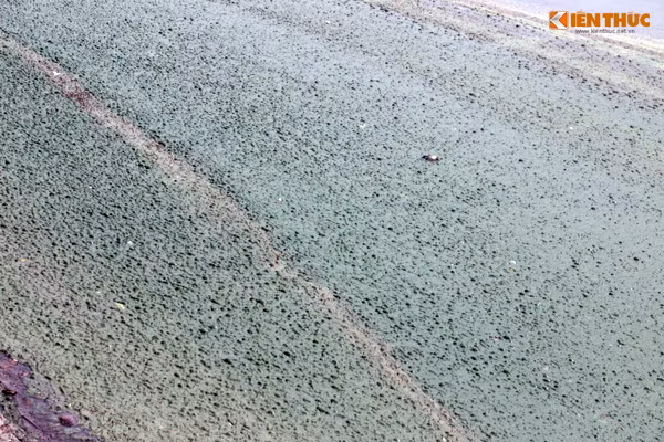 Những con ốc dưới hồ bị chết đã lâu, vỏ của chúng dạt vào phía bậc thang lên xuống góc hồ.