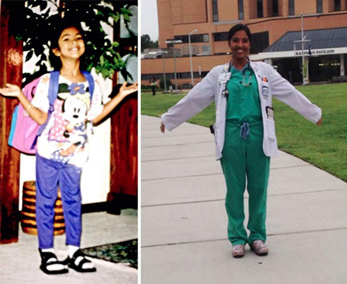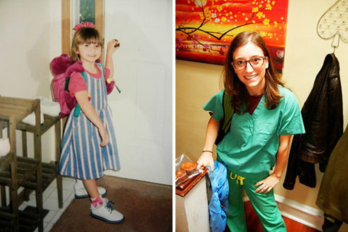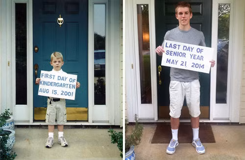 Ngày đầu tiên mẹ đưa con tới trường, thế mà giờ con đã cao lớn hơn mẹ rồi.