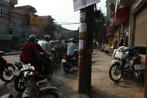 Theo ghi nhận của phóng viên, khắp các phố phường, ngõ hẻm… ở Thủ đô, đâu đâu cũng thấy những tờ quảng cáo dán kín tường, cột điện