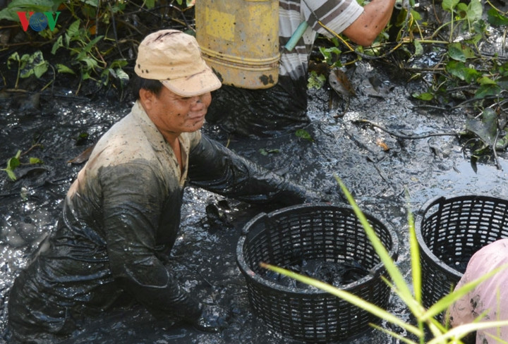 Vào mùa khô, sau khi thu hoạch vụ lúa thứ 2, nước trong ruộng cạn dần là thời điểm người dân nơi đây bắt đầu vụ thu hoạch cá đồng.