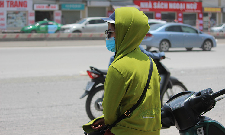 Không chỉ phụ nữ, ngay cả đàn ông khi ra đường những ngày này phải mặc đồ chống nắng kín người.