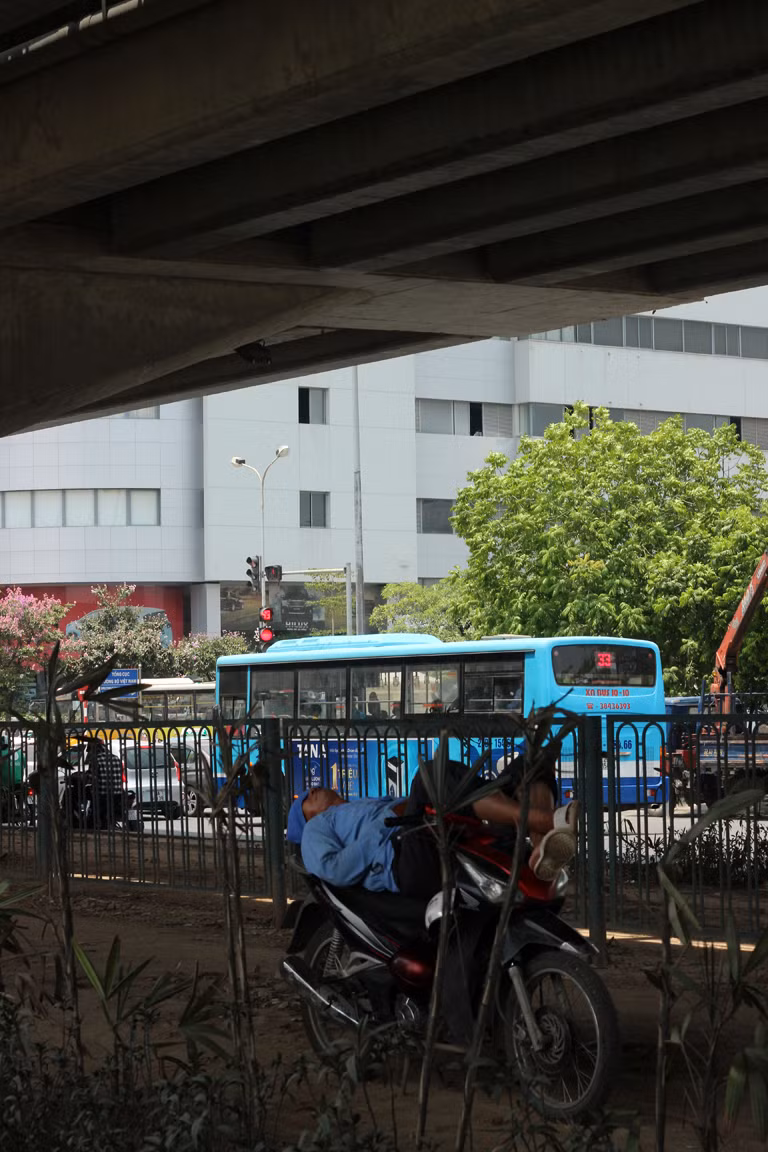Bóng cây xanh mát mẻ, gầm cầu, trạm xe buýt... là những nơi lý tưởng để người lao động nghèo tranh thủ tận dụng để ngủ trưa.