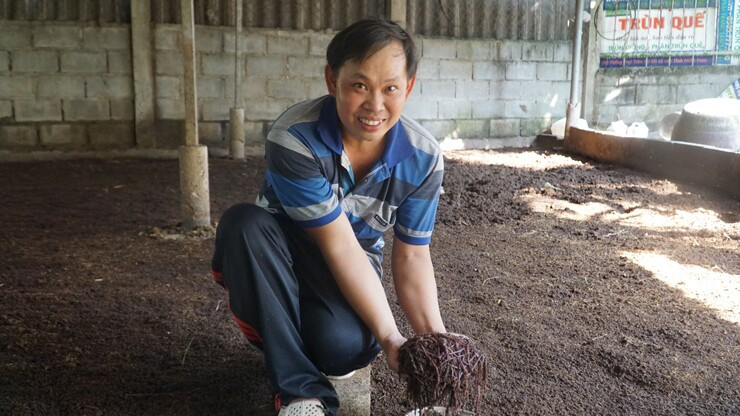 Hiện mỗi tháng trang trại của anh Vinh xuất bán trên 500 tấn phân trùn quế với giá từ 3,5- 5 triệu đồng/tấn, trên 15 tấn trùn thịt với giá từ 50.000-60.000 đồng/kg. Ngoài ra, anh còn bán giống và nhiều sản phẩm khác sản xuất từ phân trùn. Nhờ đó, trung bình doanh thu của anh Vinh cán mốc 3 tỷ đồng.