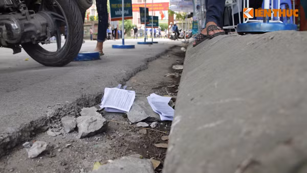 Những đống phao thi vứt trắng trước cổng trường ĐH Thủy Lợi, ai cũng có thể trông thấy.