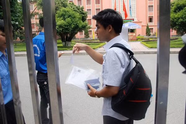 Một số thí sinh đến phòng thi vội vã quên mang cả dụng cụ học tập đã phải nhờ phụ huynh mang đến.