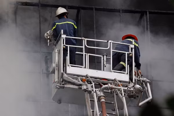 Đến 16h, ngọn lửa vẫn chưa được khống chế, xe cứu hỏa, cán bộ y tế tiếp tục được tăng cường đến hiện trường. Theo một số nguồn tin, vẫn có một số người bị mắc kẹt tại tầng 6 khu vực hiện trường vụ cháy.