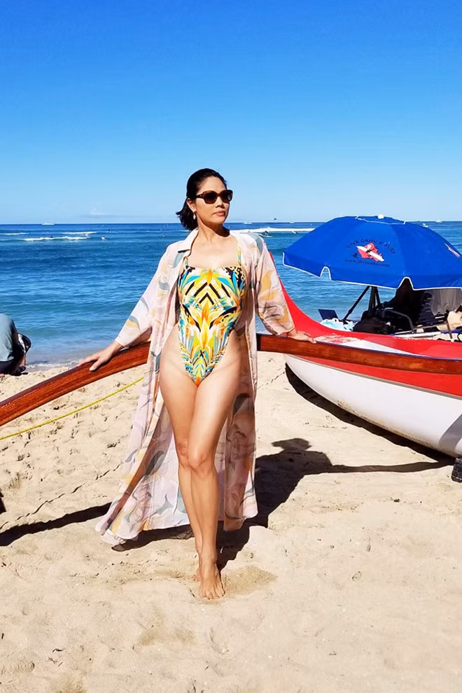 Tuổi 47, Hồ Lệ Thu vẫn giữ vóc dáng gợi cảm nhưng hơn thế là vẻ mặn mà, thần thái tự tin, giàu năng lượng của cô.