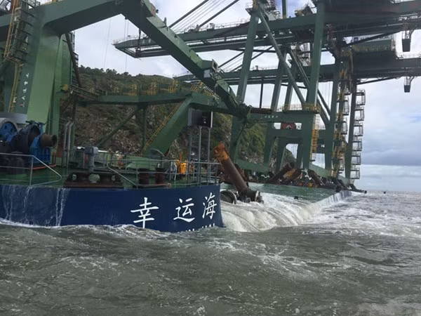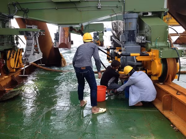 | Ba dàn cẩu “khủng” bị mắc cạn nhìn từ xa |