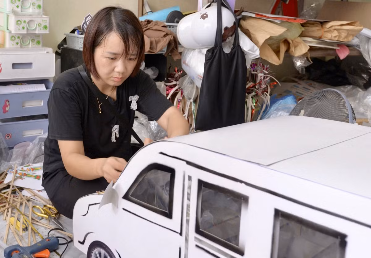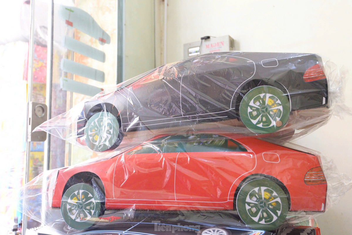 Gia đình chị Vân, chủ một cơ sở sản xuất vàng mã cho hay: "Trần sao âm vậy nên ở đây không thiếu thứ gì, hàng gì cũng có từ biệt thự, iphone đến xe đạp. Những loại hàng độc, lạ thì phải đặt trước, cònhàng thông thườngthì luôn có sẵn.