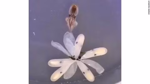Khi thoát ra khỏi túi trứng, bạch tuộc con bất ngờ thay đổi từ màu trắng mờ sang màu nâu thông thường.