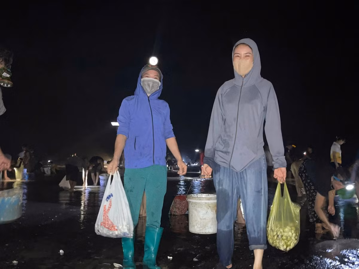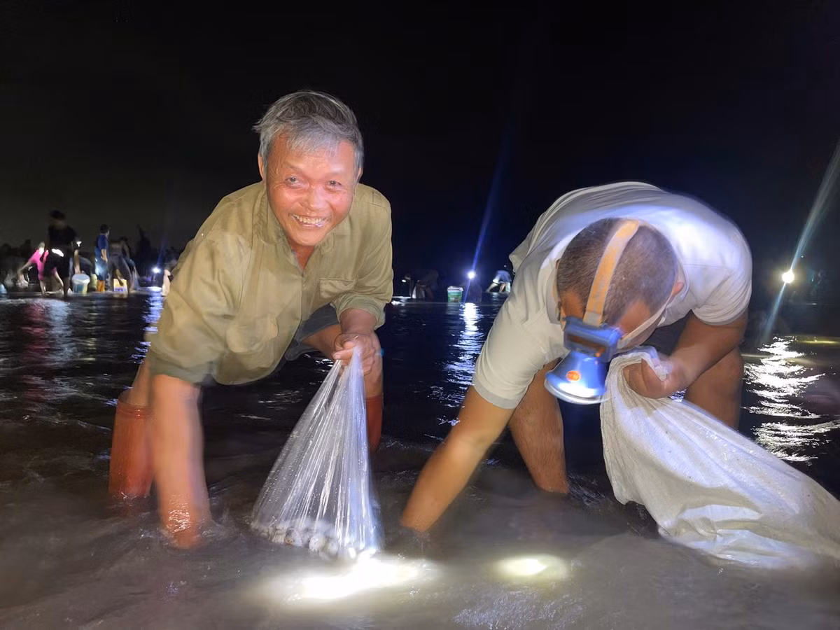 Sau bão số 10, bãi biển Ninh Bình phủ trắng bởi ngao, sò dạt vào bờ, người dân đổ xô ra bãi biển nhặt “lộc biển”, nhiều người tranh thủ kiếm thêm thu nhập.