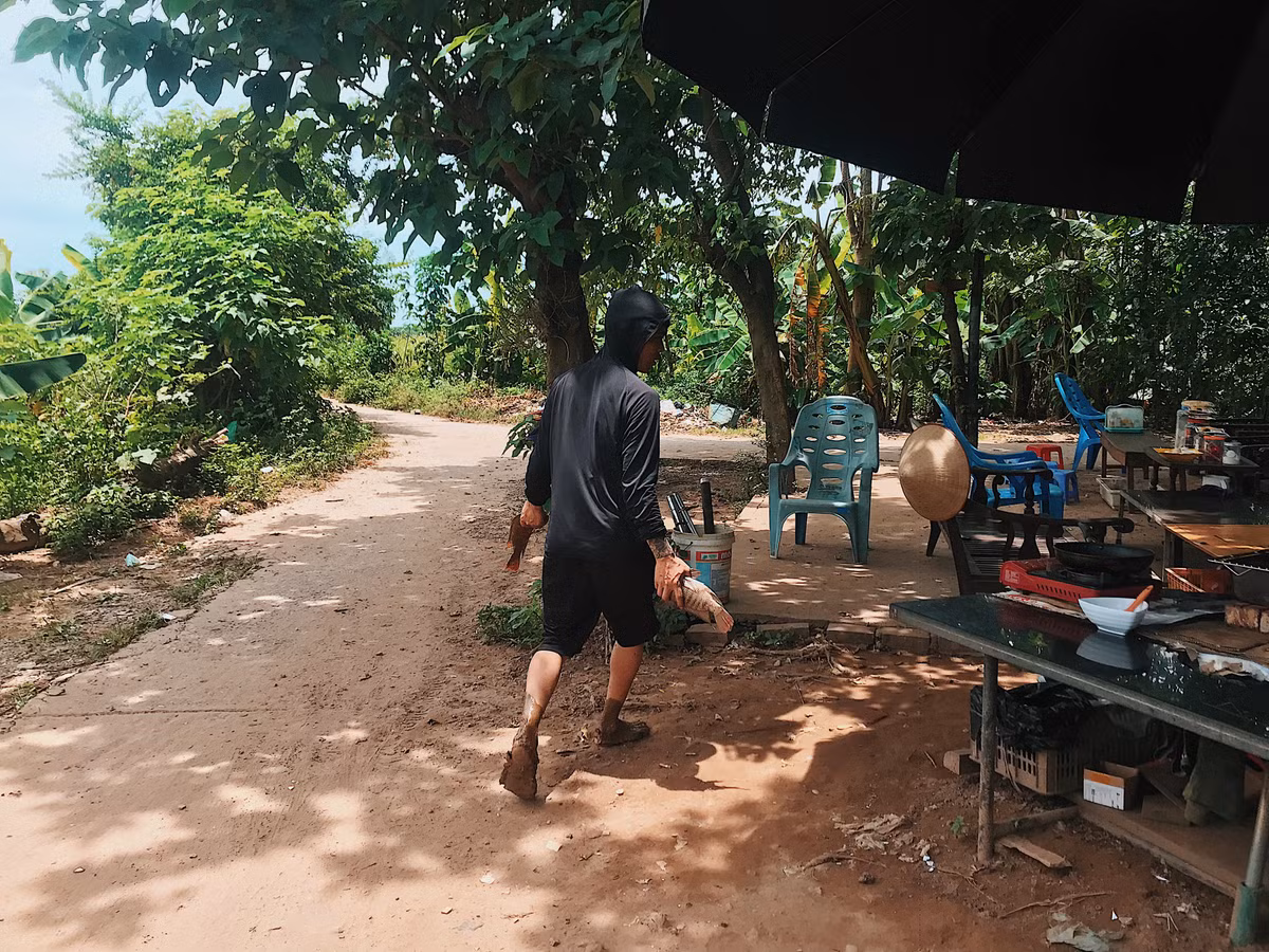 Mâm cơm đạm bạc của người dân bãi giữa.
