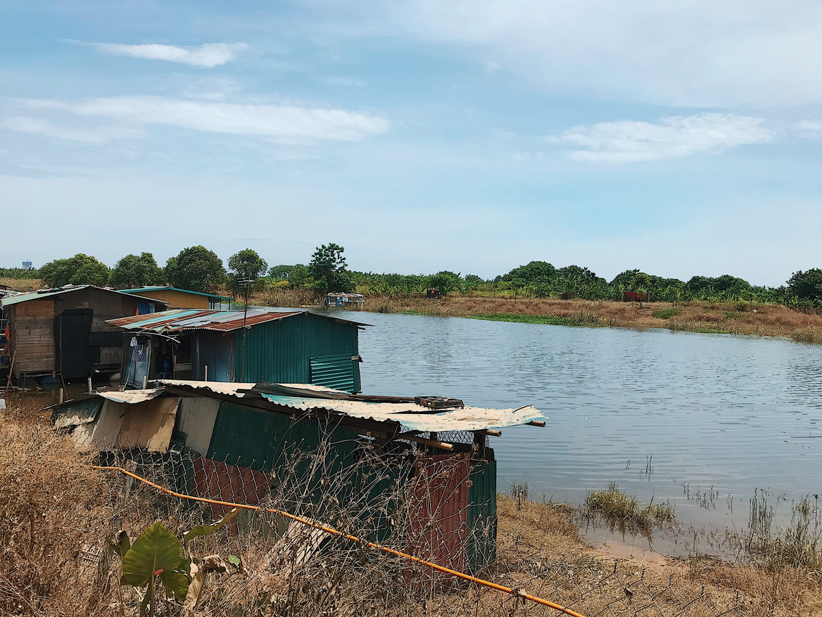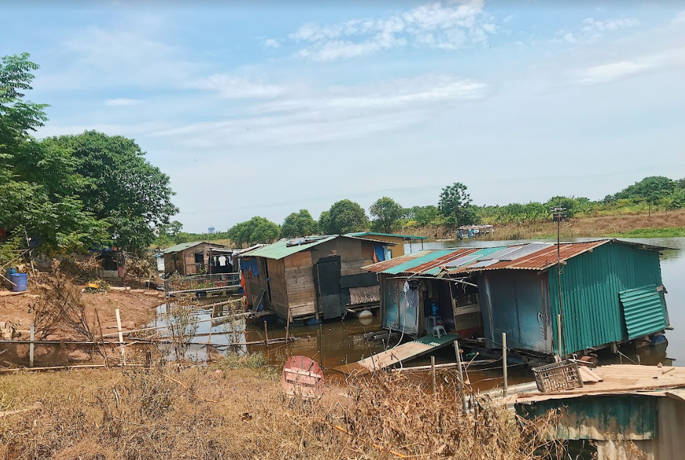 Những căn nhà được che chắn tạm bợ bằng những tấm bìa carton, gỗ ép, mái được lợp bằng Fibro xi măng.