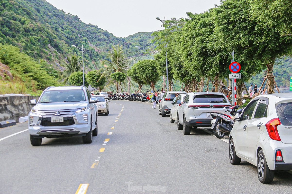 Càng về chiều lượng người càng đông khiến hai bên đường lên bán đảo Sơn Trà chật kín chỗ đậu xe.