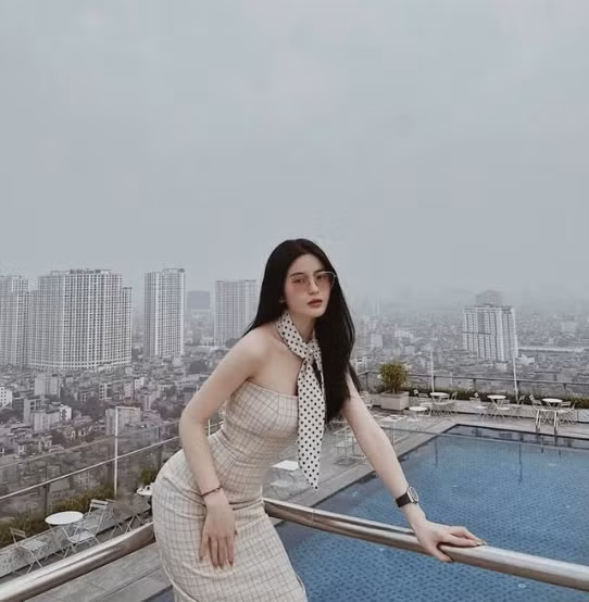 Mặc dù đeo khẩu trang che gần hết khuôn mặt nhưng Chu Thanh Huyền vẫn dễ nhận ra, cô để lộ làn da trắng sáng mịn màng.
