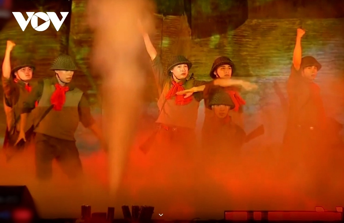 Khán giả xúc động và ấn tượng với các tiết mục nghệ thuật tái hiện lịch sử đấu tranh giải phóng dân tộc hào hùng.
