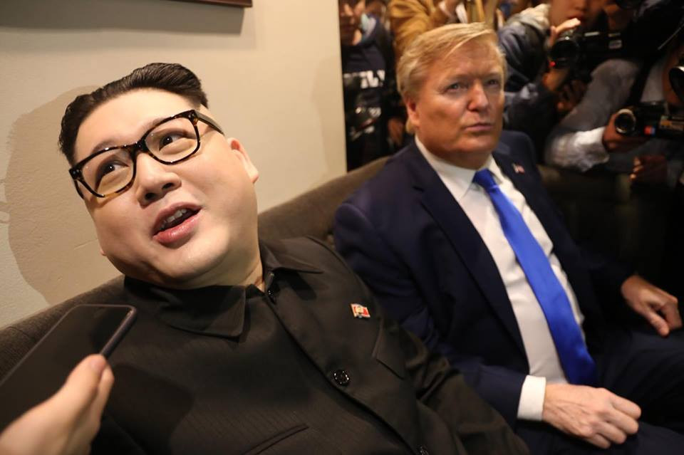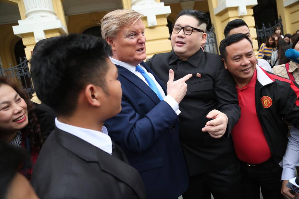Chiều 22/2, bản sao của hai nhà lãnh đạo và Donald Trump và Kim Jong-un đã bất ngờ xuất hiện tại một khách sạn nổi tiếng ở Hà Nội, ngay trước thềm cuộc gặp thượng đỉnh Mỹ-Triều lần thứ 2 dự kiến diễn ra vào ngày 27-28/2 tới.