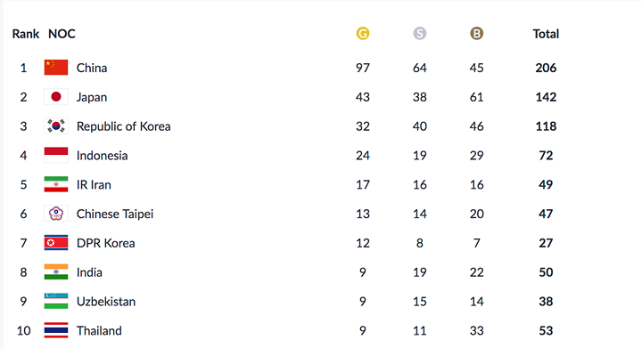 10 Đoàn thể thao đứng đầu tại ASIAD 2018.