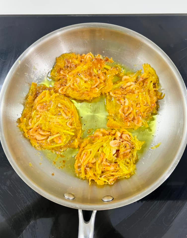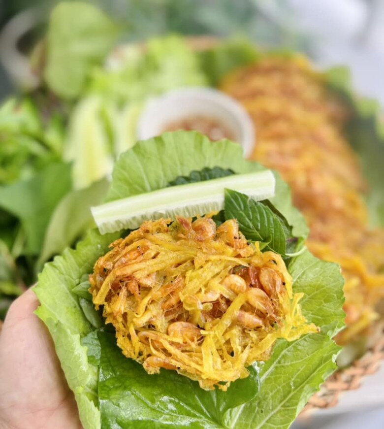 Bánh khoai rán đã quá quen thuộc, nhưng nếu thêm tép tươi vào, bạn sẽ có ngay một phiên bản mới lạ và hấp dẫn hơn – bánh tép chiên khoai. Vỏ ngoài giòn rụm, bên trong là lớp khoai bùi bùi kết hợp với vị ngọt tự nhiên của tép, tạo nên hương vị khó cưỡng. Khi chiên vàng, từng chiếc bánh tỏa mùi thơm lừng, cắn một miếng là cảm nhận ngay độ giòn tan, béo bùi đầy mê hoặc. Món này không chỉ ngon mà còn rất dễ làm, thích hợp cho bữa xế chiều hay những buổi quây quần gia đình. Đặc biệt, bánh sẽ càng hấp dẫn hơn khi cuốn cùng rau sống, chấm nước mắm chua ngọt, vừa đậm đà lại không hề ngấy.