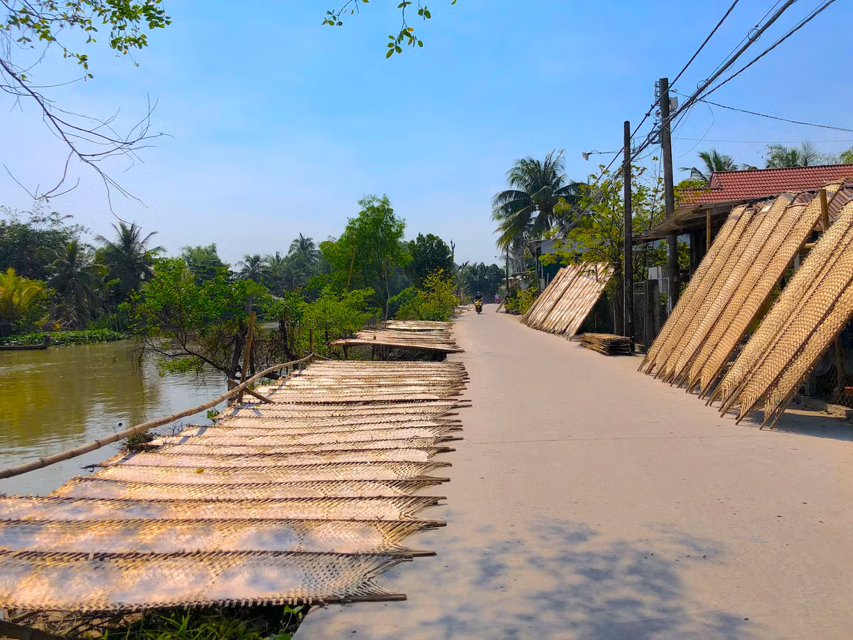 Những ngày này, đến làng nghề bánh tráng Thuận Hưng, đâu đâu cũng thấy các vỉ bánh trắng phau phơi "rợp trời".