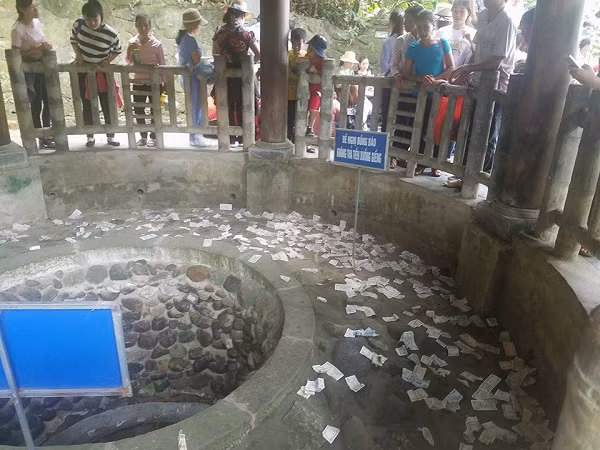 Việc “xả” tiền vô tội vạ đã vô tình khiến nguồn nước bị ô nhiễm, cảnh quan khu di tích trở nên lộn xộn, nhếch nhác, gây ra hình ảnh phản cảm ở chốn linh thiêng mặc dù đã có biển cấm.