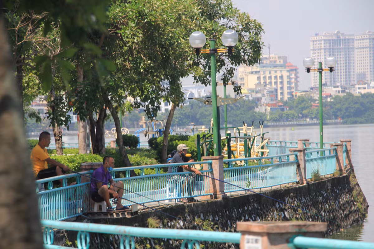 Câu cá trộm bất chấp việc Hà Nội đang căng mình phòng, chống dịch COVID-19.