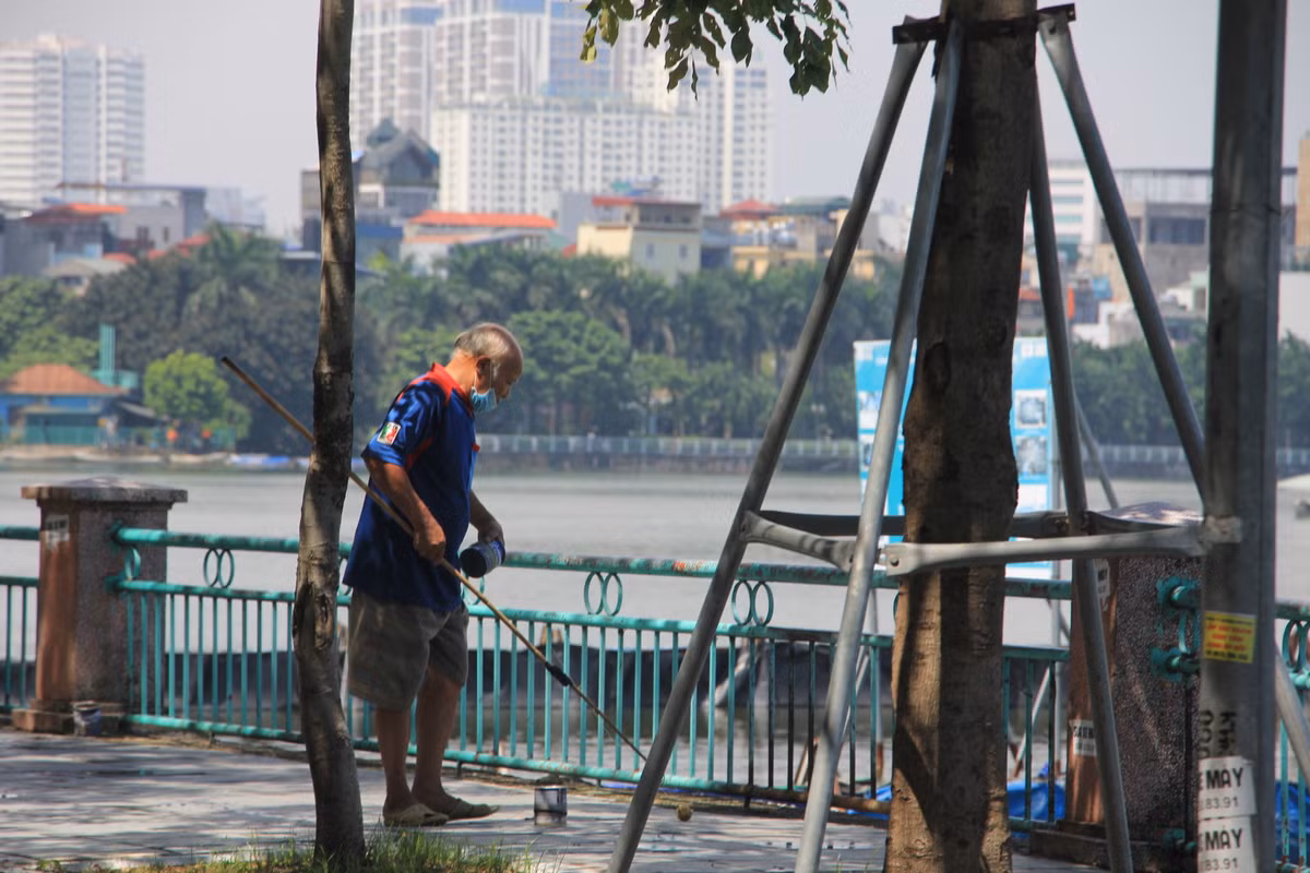 Mặc cho Hà Nội vẫn đang kiểm soát chặt di biến động của người dân theo nguyên tắc Chỉ thị 15 và việc cấm câu cá tại hồ Tây, nhiều "cần thủ" vẫn lao đến đây để tìm "thú vui".