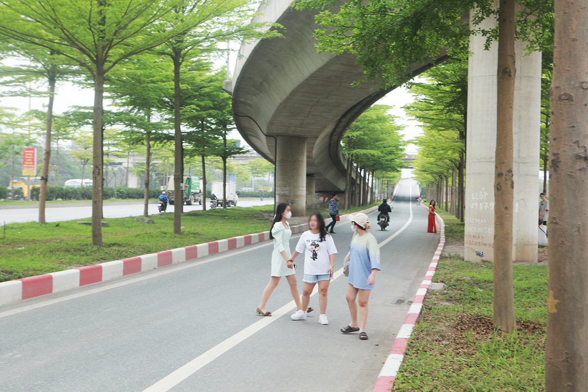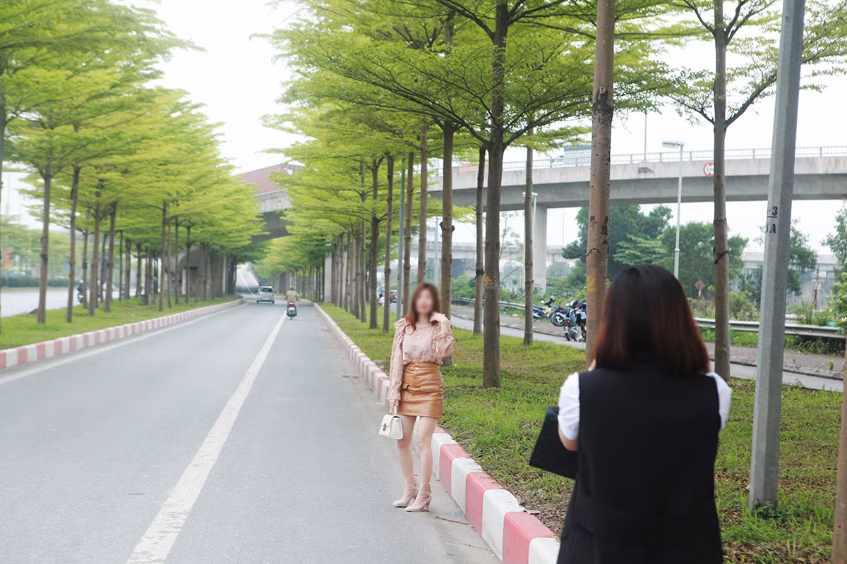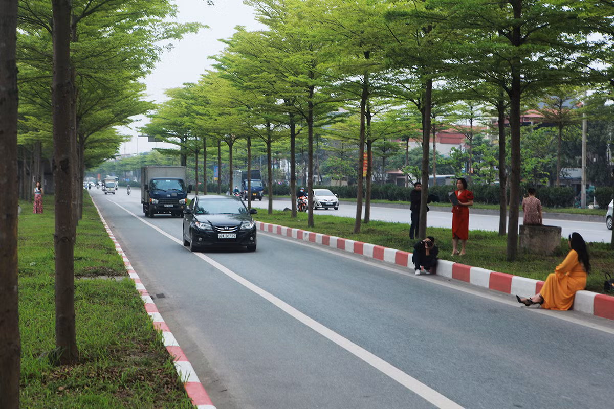 Những ngày này, hàng cây bàng lá nhỏ tại nút giao Quốc lộ 5 với lối lên cao tốc Hà Nội – Bắc Giang bắt đầu đâm chồi. Khung cảnh rất đẹp khiến nơi đây trở thành địa điểm chụp ảnh yêu thích của nhiều người.