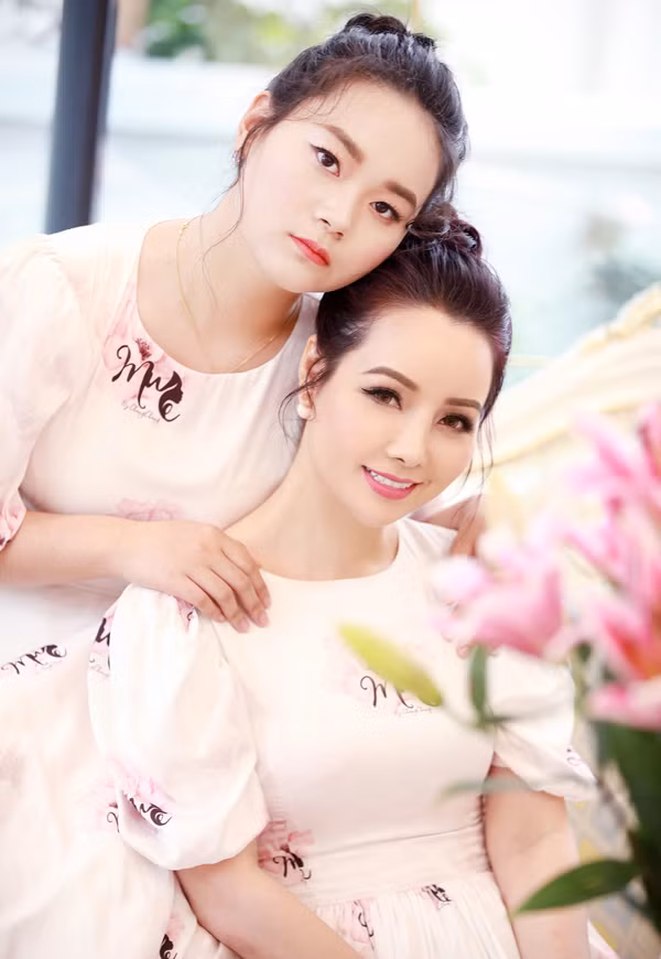 Hai mẹ con thực hiện bộ ảnh cùng nhau, về chiều cao, cô bé không hề thua kém mẹ. Ảnh: Trương Đại Dương.