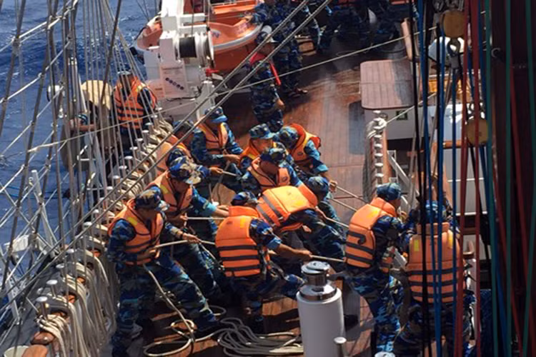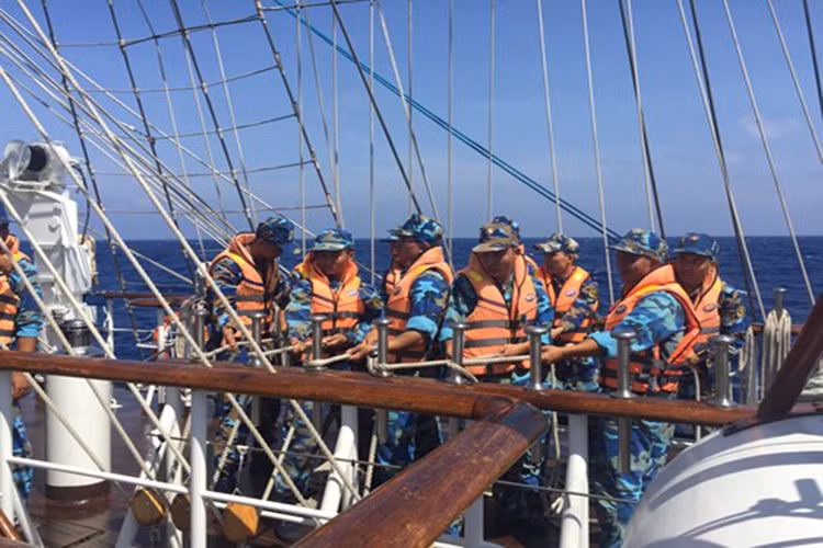 Bình tĩnh, tự tin trong chỉ huy và xử lý các tình huống; sử dụng thành thạo vũ khí trang bị… Đó là cảm nhận của chúng tôi về các học viên cấp phân đội khóa 58 trên tàu buồm 286 – Lê Quý Đôn thuộc Học viện Hải quân trong chuyến đi huấn luyện thực hành dài ngày trên biển. Hình ảnh: Cán bộ, giảng viên, học viên Học viện Hải quân chào cảng trước khi xuất phát.
