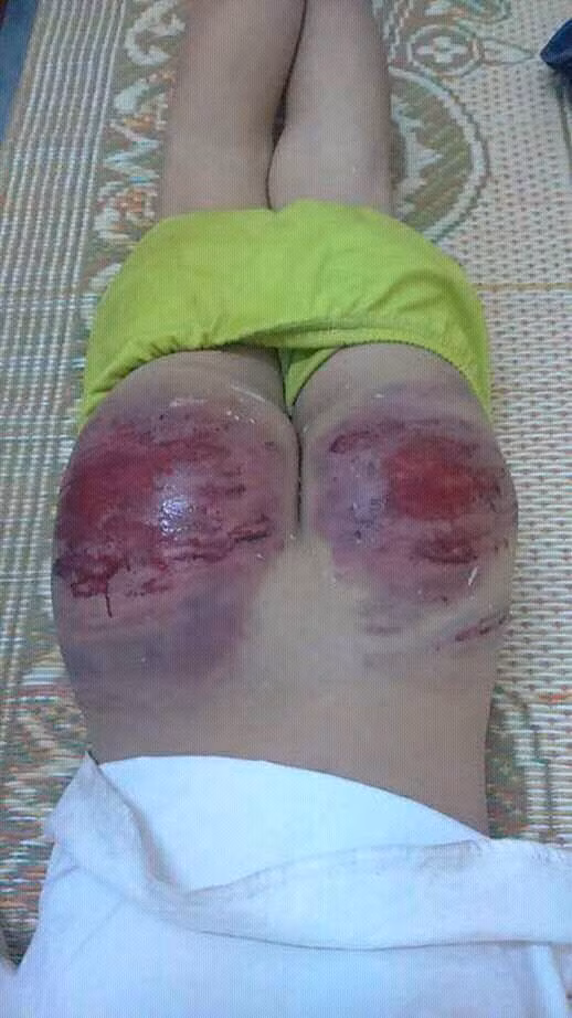 | Hình ảnh bé Tạ Văn Long bị bố đánh bầm mông khiến nhiều người không khỏi xót thương. |