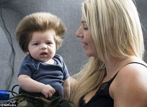 Heather Serna không phải là bé đầu tiên sở hữu bộ tóc dựng đứng độc đáo đó. Bởi ở Anh, cậu bé Junior Cox-Noon, 9 tuần tuổi cũng đã thu hút sự chú ý của mọi người với mái tóc dày và thẳng đứng như bị “điện giật”. Được biết, ngay từ khi sinh ra Junior Cox-Noon cũng đã có rất nhiều tóc và càng ngày càng dài, dày hơn.