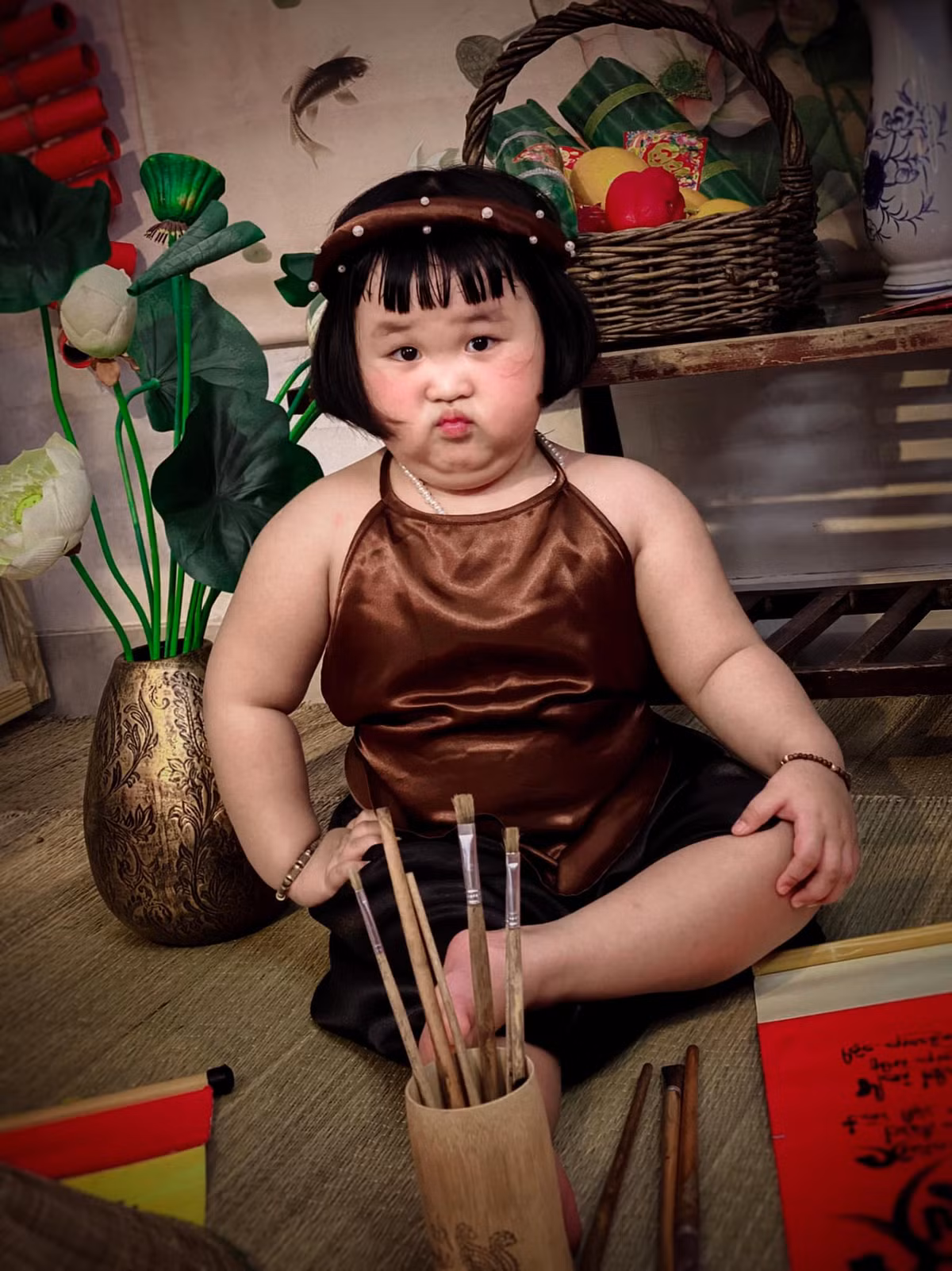 Bên cạnh những bộ ảnh của con trẻ vô cùng đáng yêu, xinh đẹp thì xuất hiện không ít bộ ảnh Tết "khó đỡ", “cười chảy nước mắt” ra đời, và em bé dưới đây là một ví dụ.
