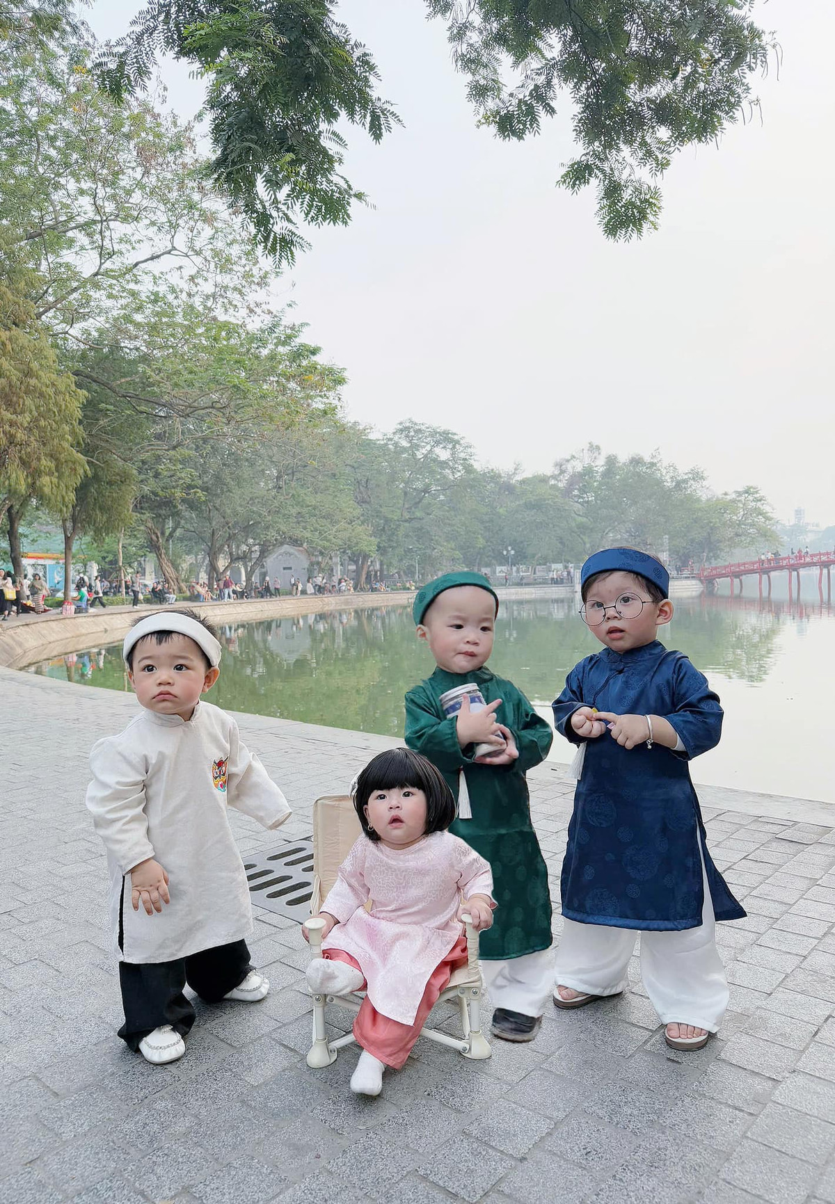 Những ngày cận Tết, ở khu vực quanh hồ Gươm không chỉ có các nàng thơ xuống phố chụp ảnh Tết, mà các em bé cũng được bố mẹ cho lên đồ xinh yêu "sống ảo".