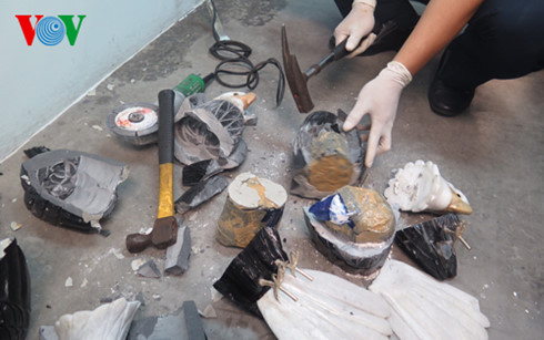 | Bằng thủ đoạn khoan rỗng ruột các tượng, nhét ma tuý bên trong... |