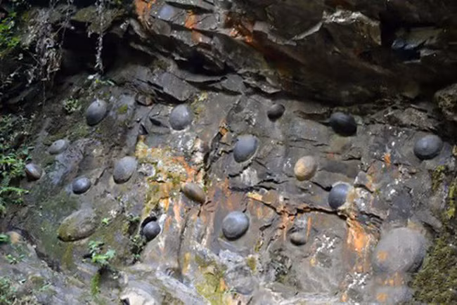 Những người dân bản địa sống gần vách đá này thuộc khu tự trị Kiềm Nam của dân tộc Miêu, tỉnh Quý Châu, Trung Quốc là những chứng nhân sống cho hiện tượng này, từ khi các viên đá tròn hình thành cho đến khi chúng lớn dần và "chín" rụng rơi xuống mặt đất.