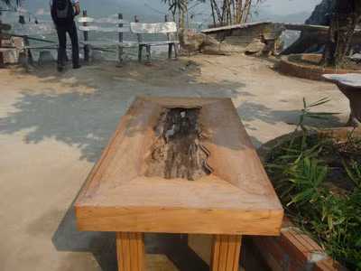 Xung quanh, một số nhà rường dựng lên bởi những cây gỗ rất lớn đi kèm với bàn ghế chạm trổ tinh xảo. Một chiếc chuông đồng nặng hàng tấn được treo trang trọng trước ngôi chùa. Còn phía sau, nhiều hòn non bộ lớn được xây dựng cầu kỳ…